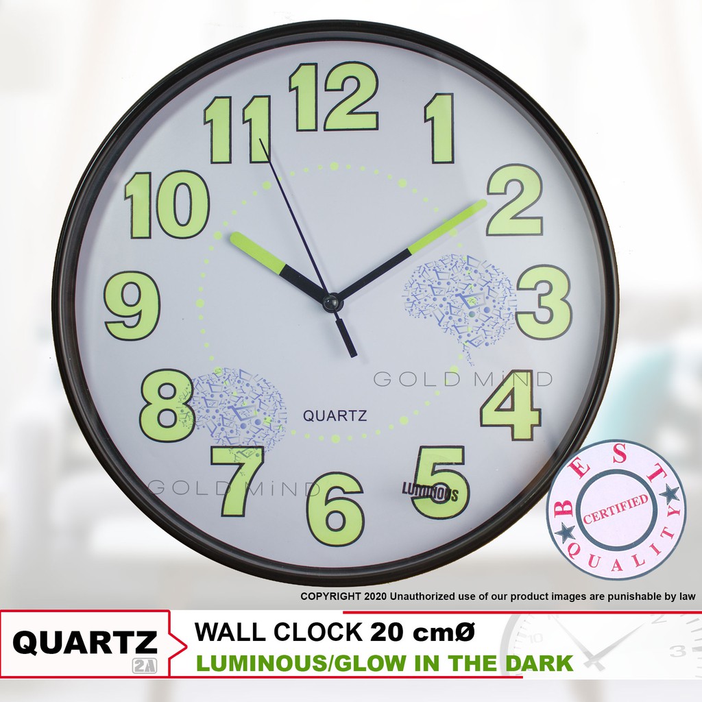 Quartz Luminous / Glow In The Dark Wall Clock 20Cm 8 Inches Shopee